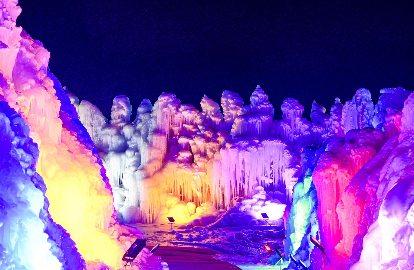 一場洋溢著濃濃年味,五彩斑斕的盛會,一場震撼人心、流光溢彩的視覺盛宴。在山西省晉中市和順縣峽谷奇緣冰燈樂園,白雪與冰山融合,天然冰瀑、冰簾、冰花美景、冰掛自然融為一體,漫步其間,好像進入到水晶世界。