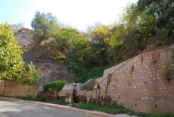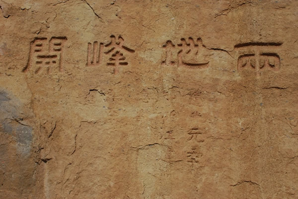 獅腦山兩地峰開石刻位于陽泉市城區獅腦山百團大戰紀念碑西南,上山公路西北側的白砂崖上,分布面積計有16平方米。落款豎排,5行。由于年長日久,大多漫漶不清,僅可讀出:“道光元年,知浙江建德□,張西□題”等字。