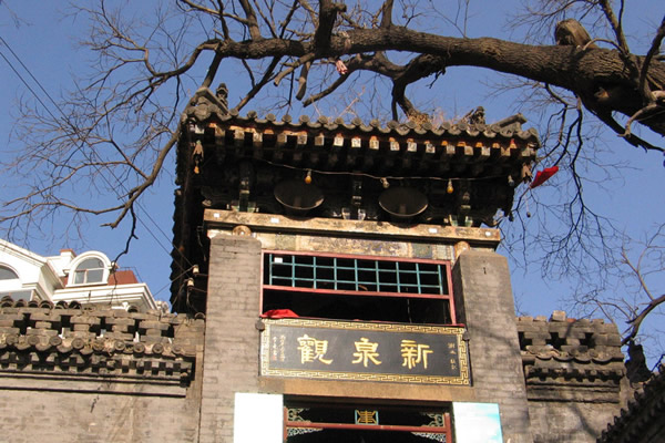 ?新泉觀位于山西省陽泉市城區南大西街中段北側,南北長95.4米,東西寬13米,分布面積約1240平方米。該建筑建于高埠之上,坐北朝南,為四合式院落。創建年代不詳,據碑文載,清康熙9年(1670),乾隆33年(1768),嘉慶24年(1819)歷有重建。新泉觀地處獅腦山北麓,北臨桃河,東與南山相望,西與北嶺坡相接,屬于溫帶大陸性季風氣候,周邊適宜種植槐樹,松樹,柏樹等。