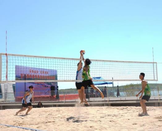 “美麗右玉夏養勝地”右玉森林康養暨首屆沙灘排球賽在生態綠色清涼的右玉中陵湖畔啟動。來自山西大學、山西農業大學、中北大學、忻州師范學院四所高校的沙灘排球運動員在美麗的塞上綠洲右玉縣揮灑汗水、盡情比賽,體驗運動的激情與暢快。
