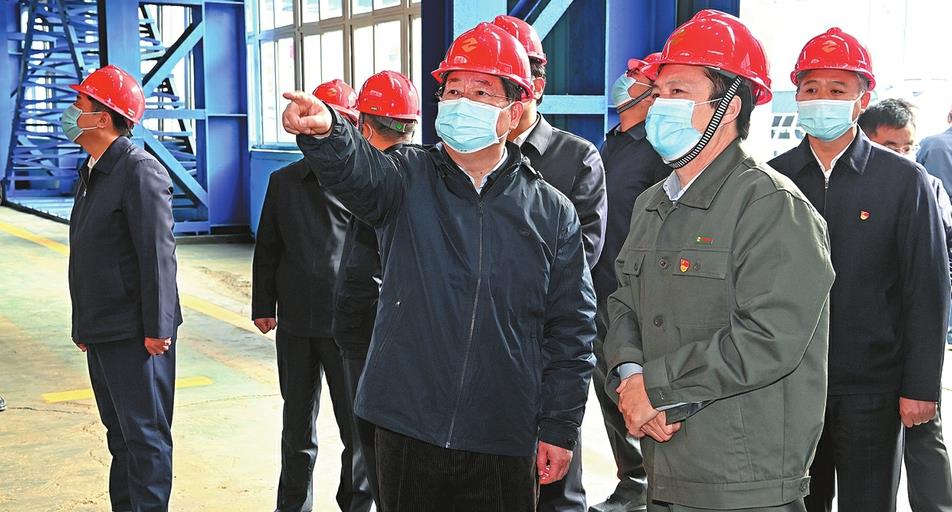 Lou Yangsheng (center in first row), Party secretary of Shanxi province, visits Zhongtiaoshan Nonferrous Metals Group based in Yuanqu county to spread the spirit of the Fifth Plenary Session of the 19th Central Committee of the Communist Party of China. LI LIANJUN / FOR CHINA DAILY