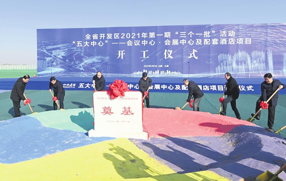 Provincial officials of Shanxi inaugurate the groundbreaking ceremony for a convention and exhibition center at the Shanxi Transition and Comprehensive Reform Demonstration Zone on Jan 1. LI LIANJUN / FOR CHINA DAILY
