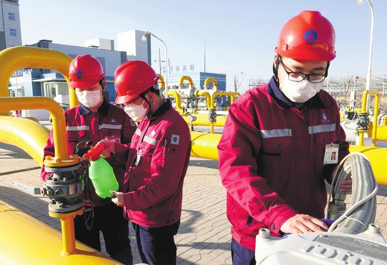 Staff members of a natural gas company in Shanxi check and maintenance equipment at a gas distribution station in Taiyuan. LIU TONG / FOR CHINA DAILY