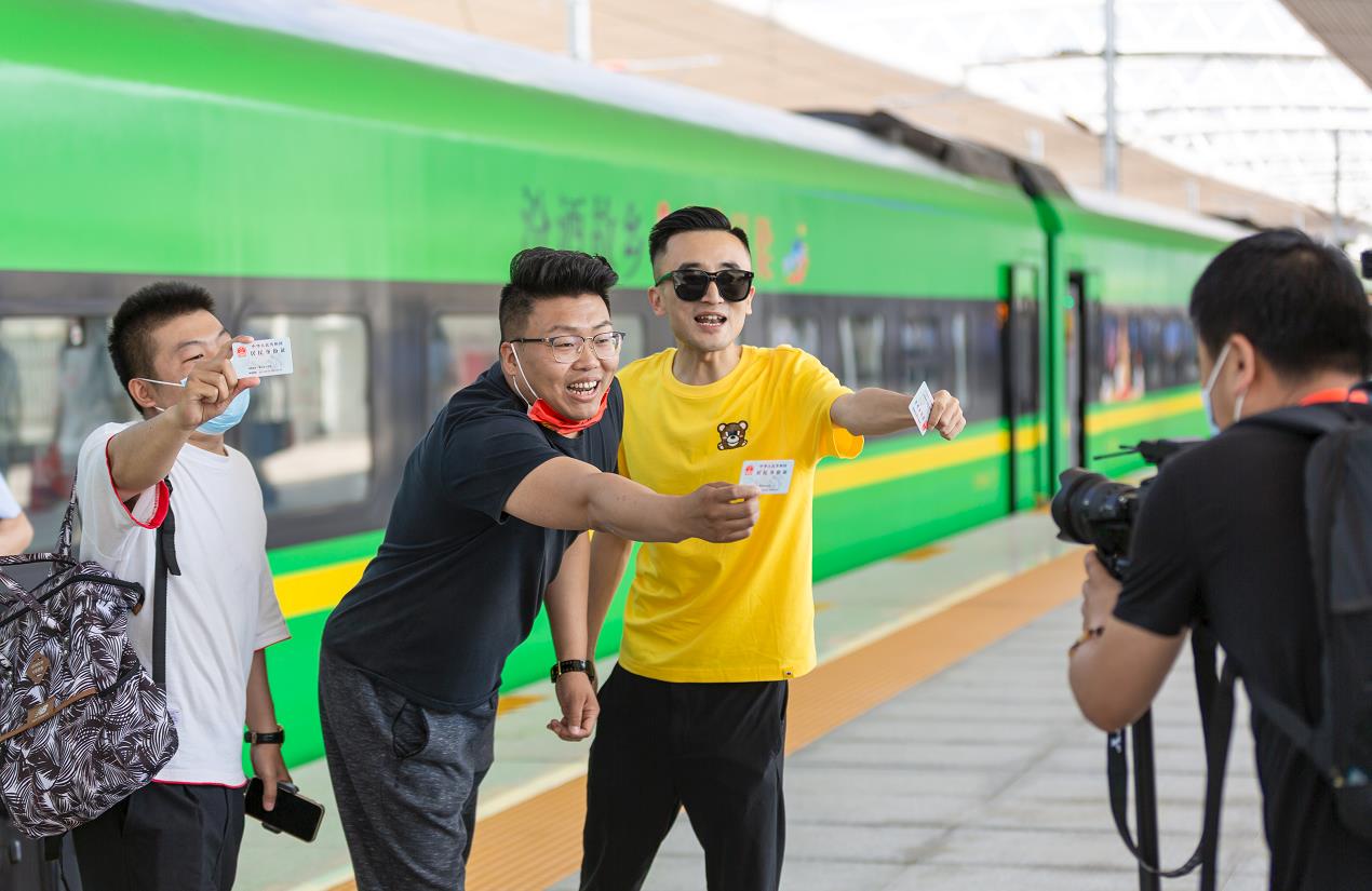 6月26日上午,太中銀鐵路呂梁至太原南段動車組列車開通。呂梁市宣傳事業發展中心供圖 馮帥攝