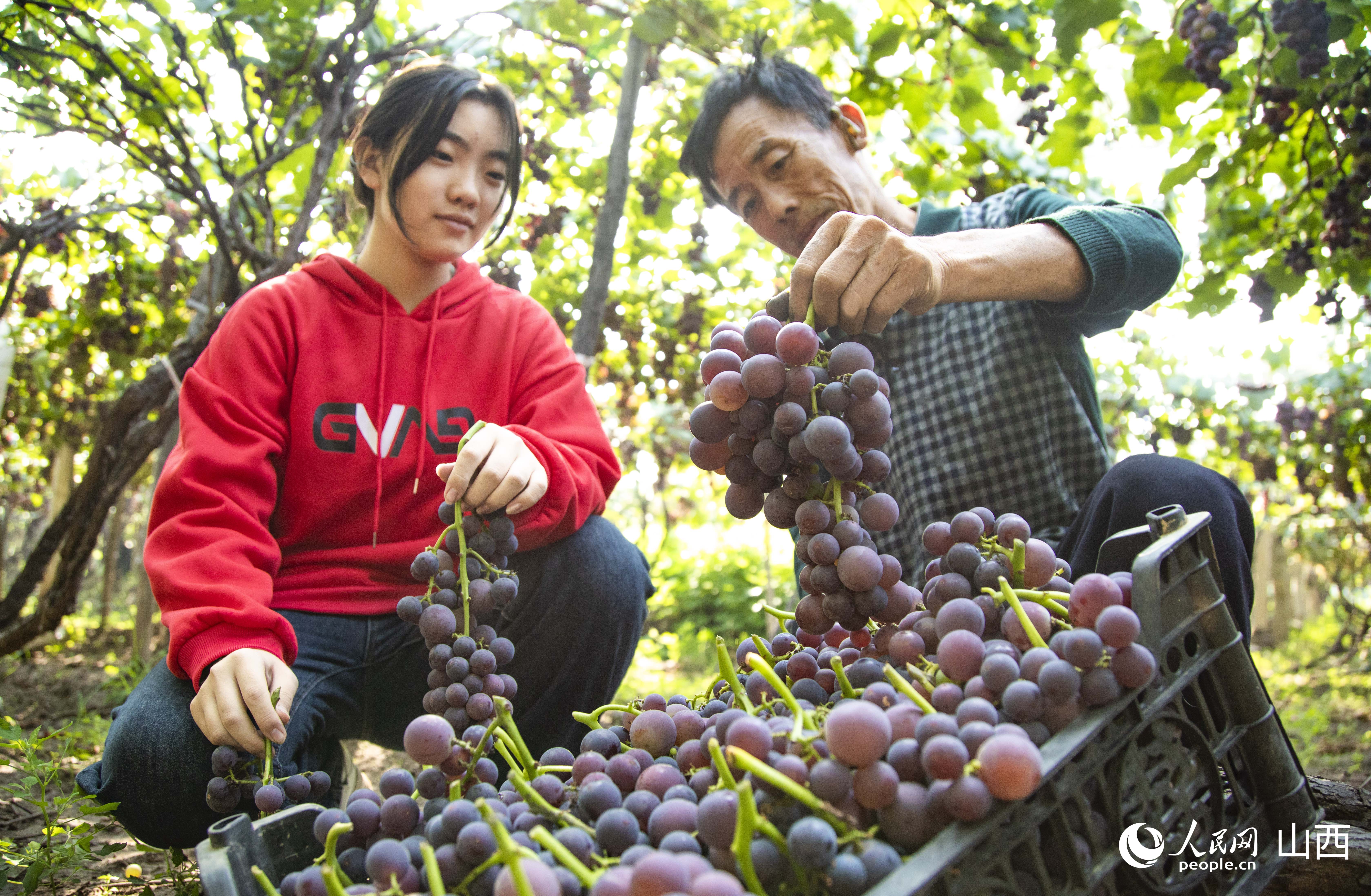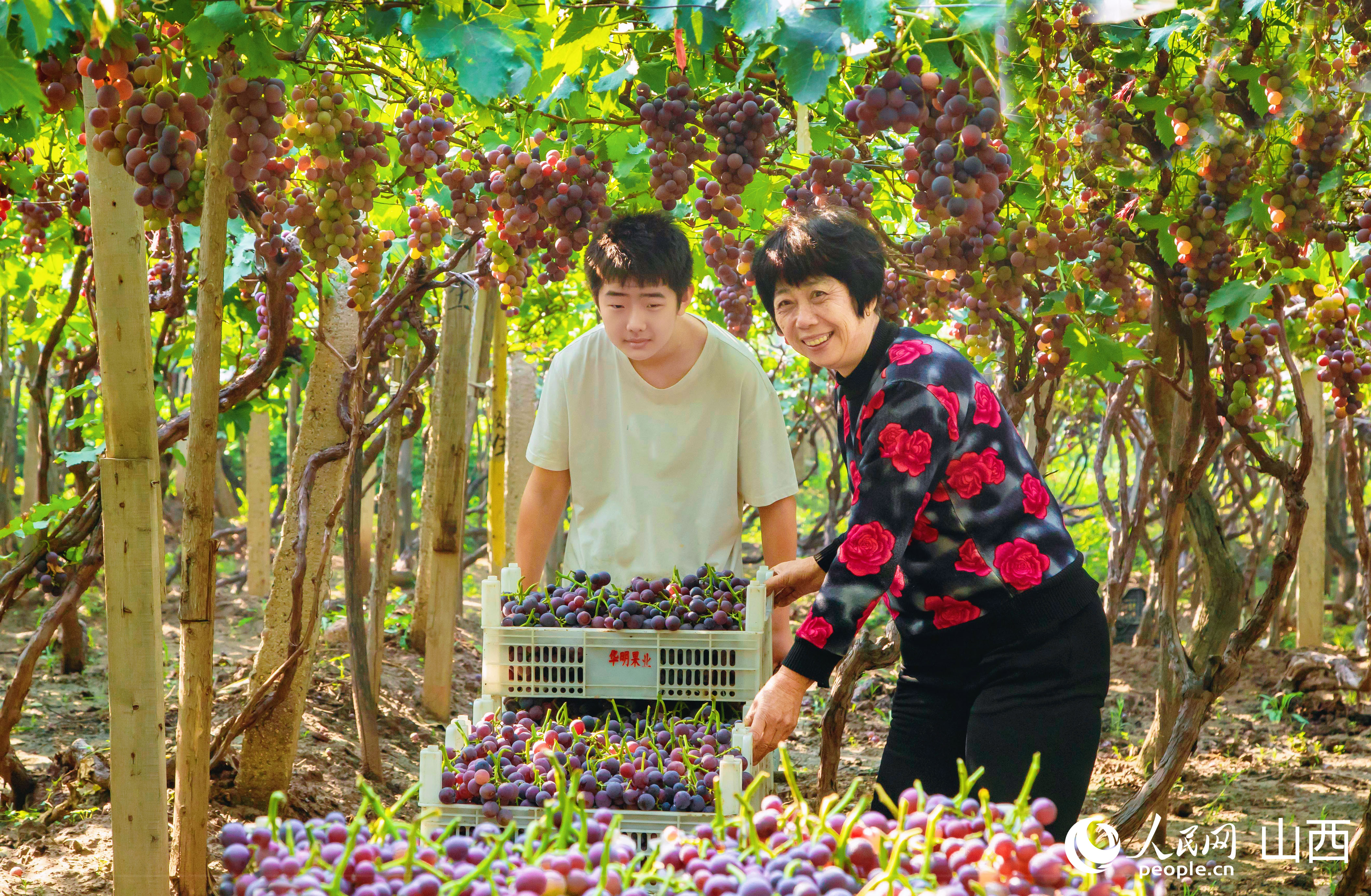 金秋九月,山西省太原市清徐縣西梁泉村的葡萄進入收獲季,山上、農田、大棚……葡萄顆粒飽滿,掛滿枝頭。果農搶抓晴好天氣采摘、裝運葡萄,一派繁忙景象。