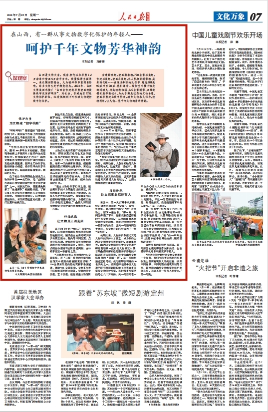 古建勘察組、壁畫勘察組、720全景采集組、古建采集組、壁畫采集組、無人機傾斜攝影組、成果轉化組……在這支年輕的隊伍中,超過80%是90后乃至00后,他們靠著一股初生牛犢不怕虎的闖勁兒,用高清晰掃描、720全景攝影、三維數據采集等新技術,為處于瀕危狀態的文物古跡、壁畫彩塑建立數字檔案,助力文物永久保存、接續利用,讓人們一覽千年文物的芳華神韻。