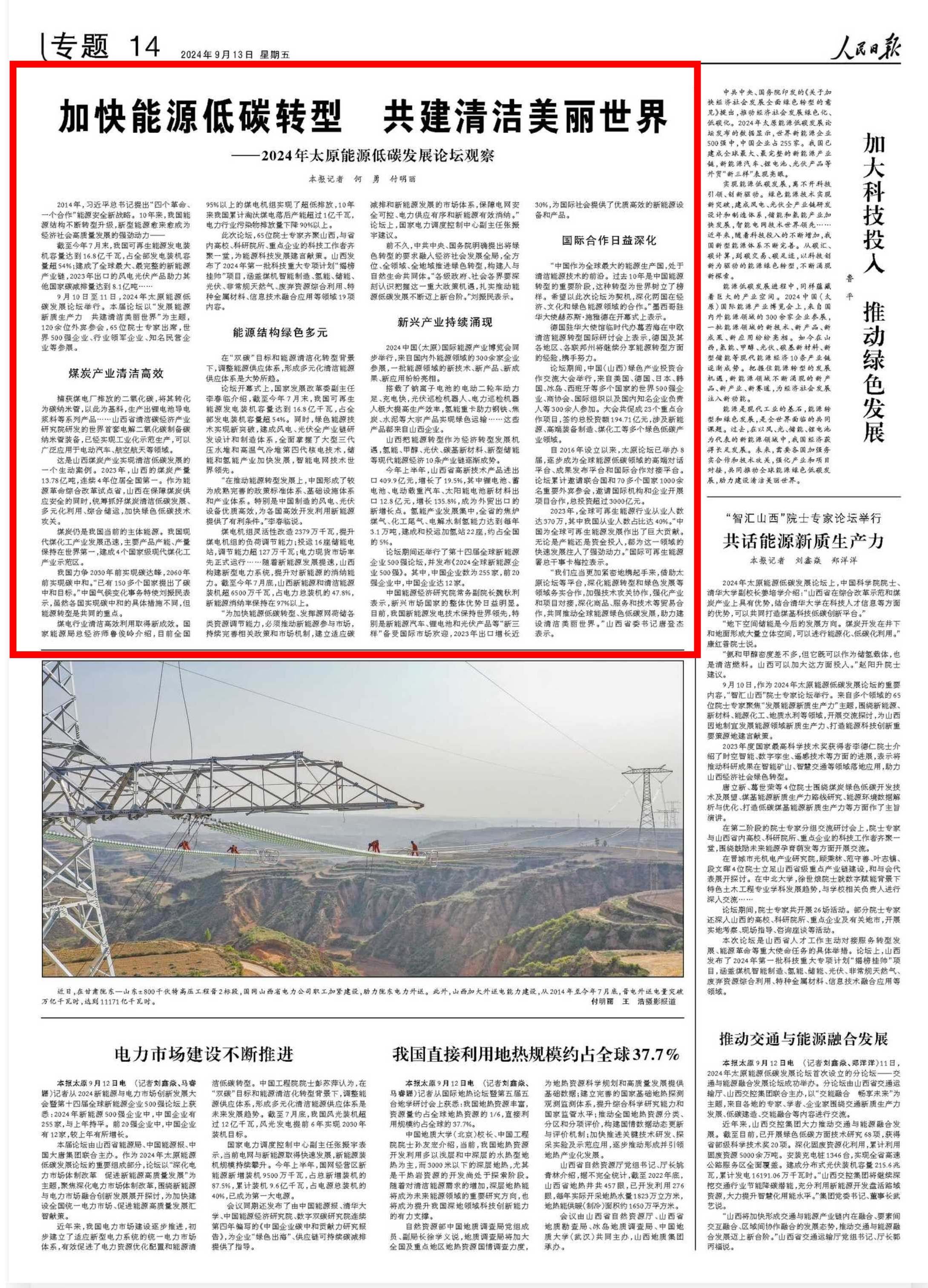 9月10日至11日,2024年太原能源低碳發展論壇舉行。本屆論壇以“發展能源新質生產力  共建清潔美麗世界”為主題,120余位外賓參會,65位院士專家出席,世界500強企業、行業領軍企業、知名民營企業等參展。