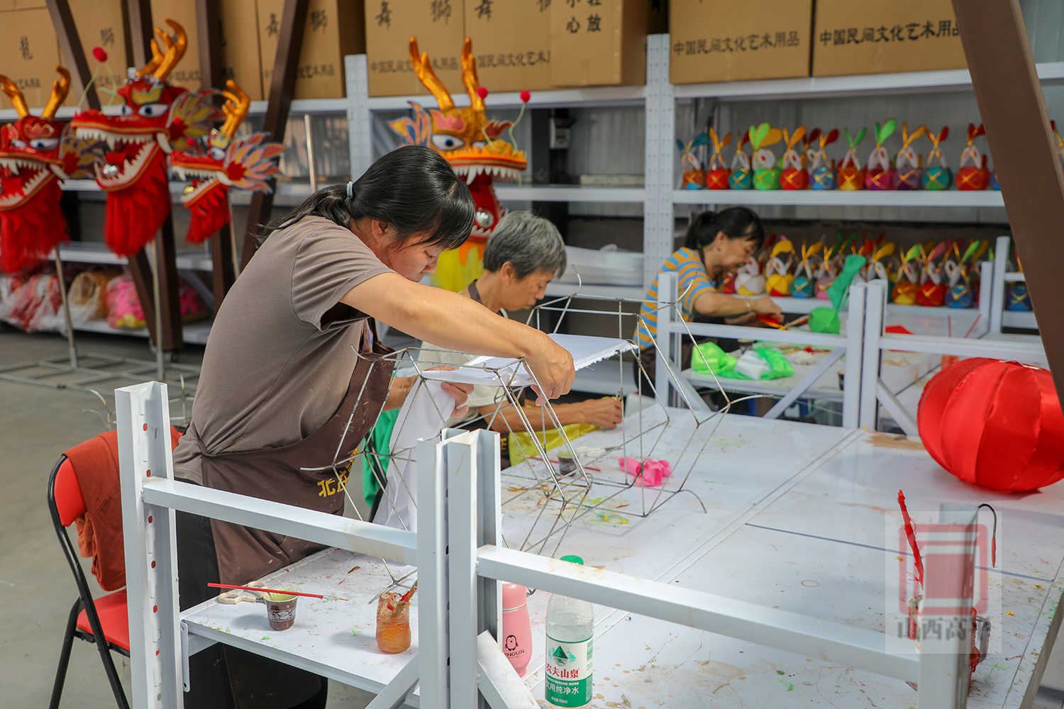 造型、噴涂、接電路、裱糊……經過十幾種工序,根根鐵絲和色彩斑斕的綢布就變成了造型各異的花燈。