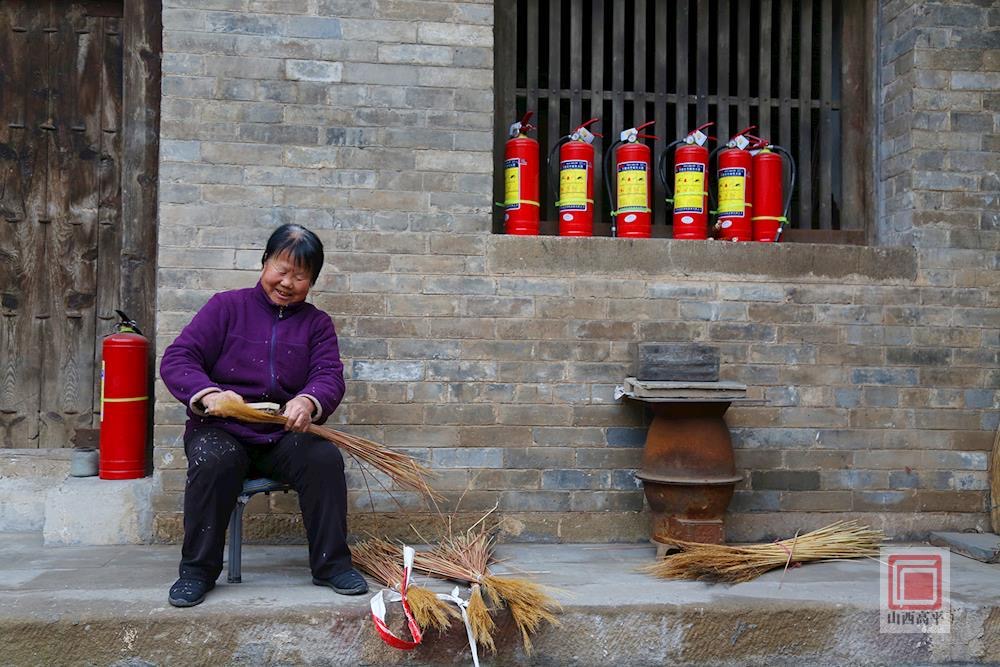 高平市鐵佛寺文保員王改英正在制作打掃衛生用的的掃帚。圖源:高平市政府官網