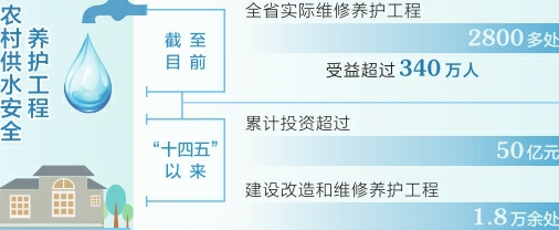 “十四五”以來,為有效鞏固拓展脫貧攻堅成果、推進鄉村全面振興,服務和保障以縣域為載體的城鄉融合發展,推動農村飲水從“有沒有”向“好不好”“優不優”轉變,我省充分發揮省級資金和地方專項債“種子”作用,撬動更多金融資金和社會資本投入農村供水工程建設和管理,累計投資超過50億元,建設改造和維修養護工程1.8萬余處,群眾飲水條件進一步改善,農村供水保障水平得到持續提升。