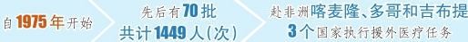 我國開啟援非醫療事業以來,我省自1975年開始向非洲派遣醫療隊,截至目前,先后有70批、共計1449人(次)奔赴非洲的喀麥隆、多哥和吉布提3個國家執行援外醫療任務,多位醫療隊隊員獲得了受援國政府頒發的“騎士勛章”“獨立勛章”“杰出貢獻獎”“貢獻獎”“榮譽市民”等國際榮譽。