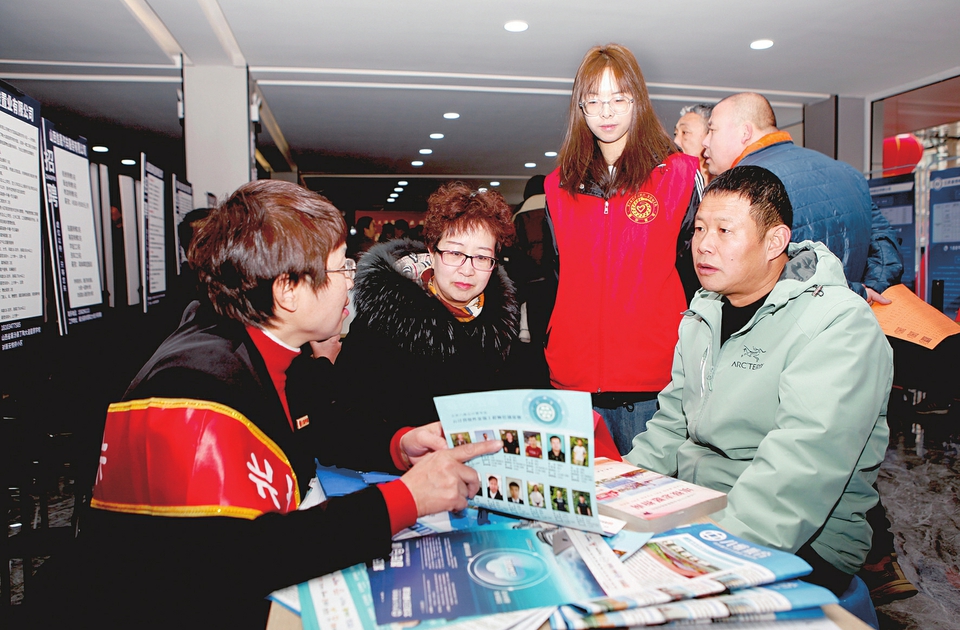 2月6日,求職者在襄汾縣2025年“春風行動”專場招聘會上咨詢崗位信息。本次活動線上線下共有130余家企業參與,提供工作崗位5200余個。(李現俊 攝)