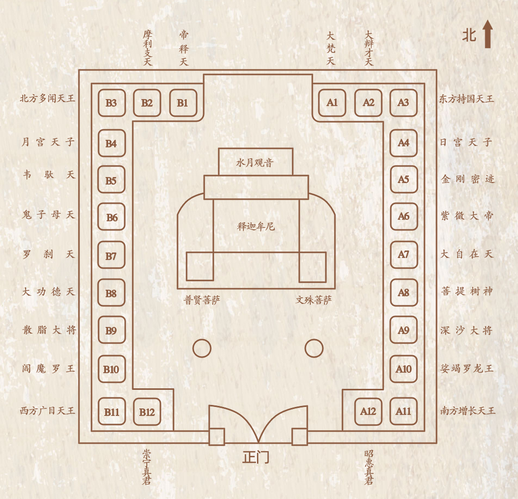 (A1)大梵天、(A10)娑竭羅龍王、(B10)閻魔羅王、(B6)鬼子母天。