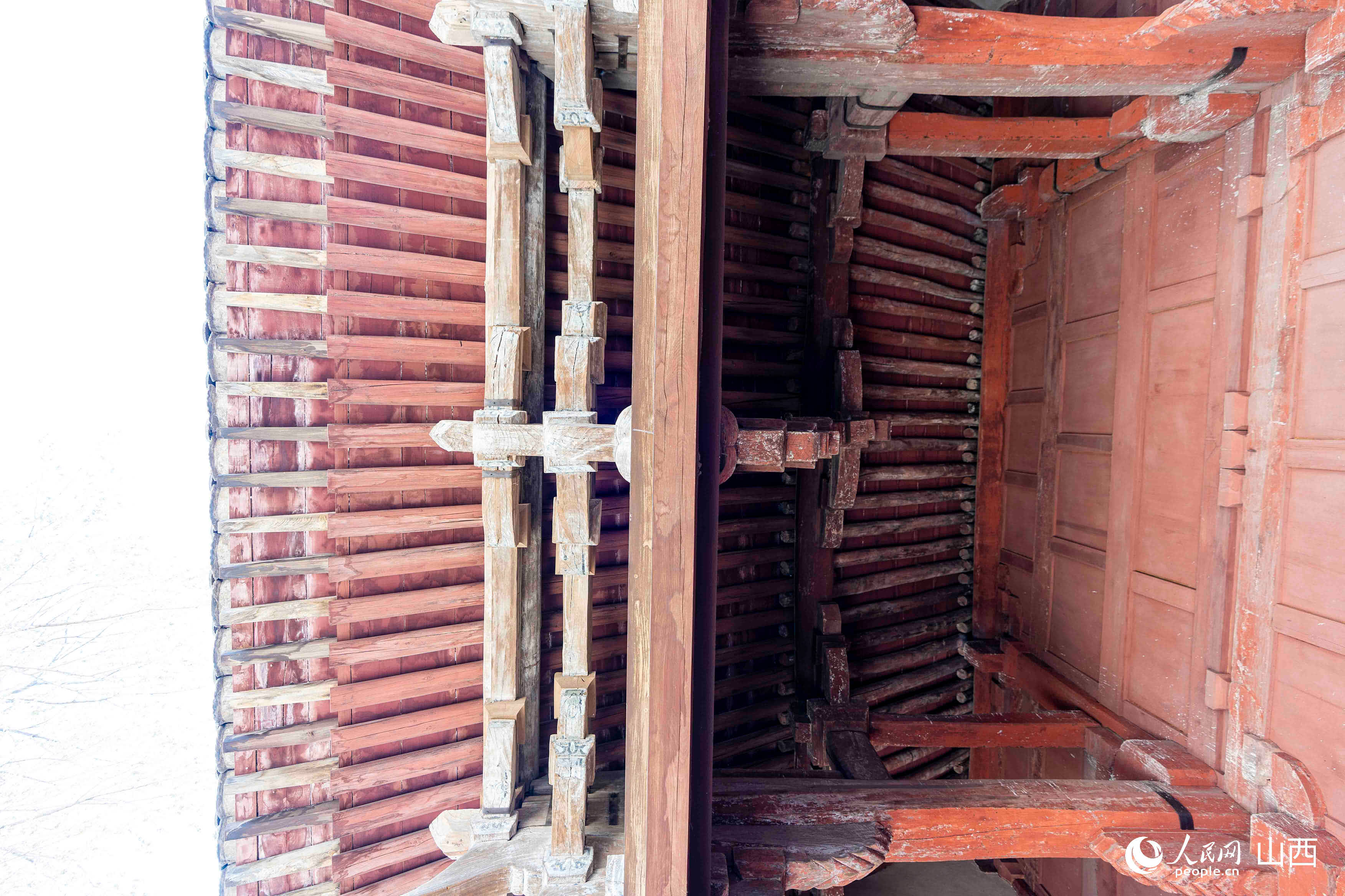 拾級而上,山門之上的倒座戲樓豁然開朗。這個曾用油燈與火把照明的舞臺,其存在本身就是建筑智慧的結晶。尤為罕見的是山墻頂部的五疊式馬頭墻,這種源自徽派建筑的設計,不僅阻隔了明火隱患,更將戲臺與兩側妝樓的木構徹底隔離,見證了明清時期晉東南與贛皖地區的美學碰撞。
