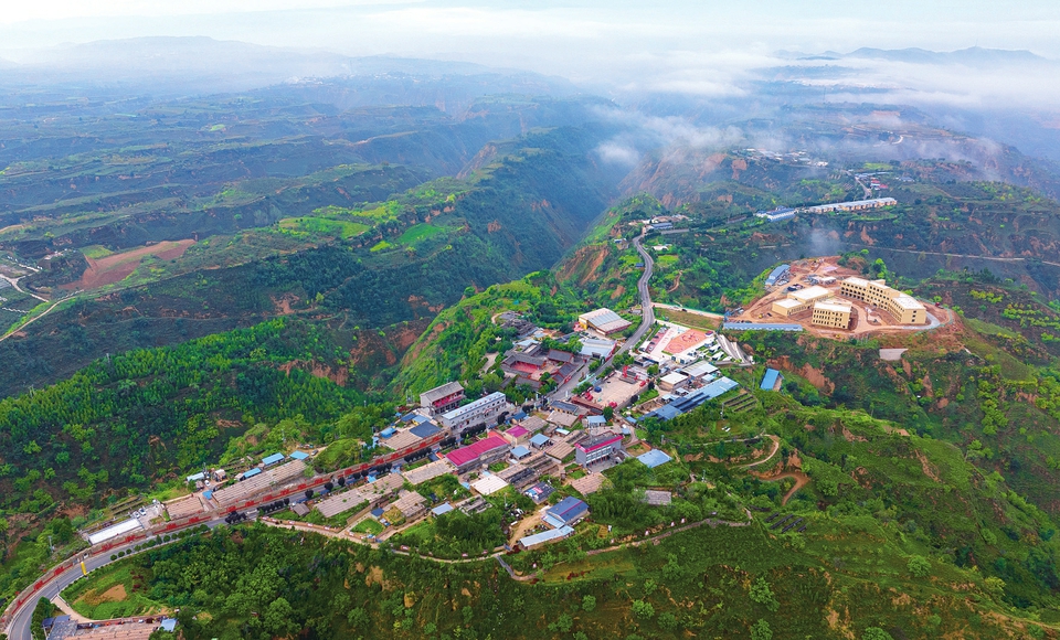 10月1日,永和縣乾坤灣鄉東征村附近,鄉村、田野、山巒等在薄霧映襯下宛若仙境,美不勝收。(李現俊攝)
