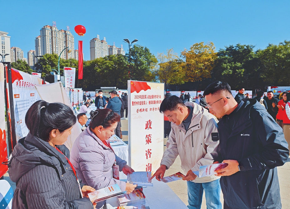 日前,2025年忻州市退役軍人就業服務專項行動暨隨軍家屬秋季招聘會在該市體育廣場舉行?;顒咏M織退役軍人及隨軍家屬與招聘單位對接交流,并提供一站式服務。(記者 申晉光攝)